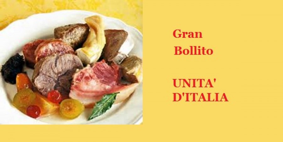 Solo questo dovrebbe bastare nel farci riflettere della necessità che il mondo ha della nostra Nazione, pensare con l’orgoglio della sapienza e della divulgazione di una cultura che ci presenta con la corteccia dura che veste un fusto elegante, come querce ben piantate nella terra che hanno radici antiche e rami allungati verso il futuro. Tante saranno le cene o i pranzi tematici legati all’Unita d’Italia e forse uno dei pranzi che tutti vorrebbero assaggiare è proprio il gran bollito di carni. Una volta si diceva che un cuoco che non sa cucinare fa di tutto un bollito. Chi lo affermava non aveva tutti i torti, perché non si può bollire tutto, ma cercare i pezzi adatti, accorpando con i giusti aromi, accompagnando con le giuste salsine. Dall’Accademia Italiana della Cucina abbiamo imparato che il bollito è una sacralità in cucina, bisogna saper scegliere anche i commensali con cui gustarlo, per non guastare l’attimo magico dello scioglimento della carne in bocca.