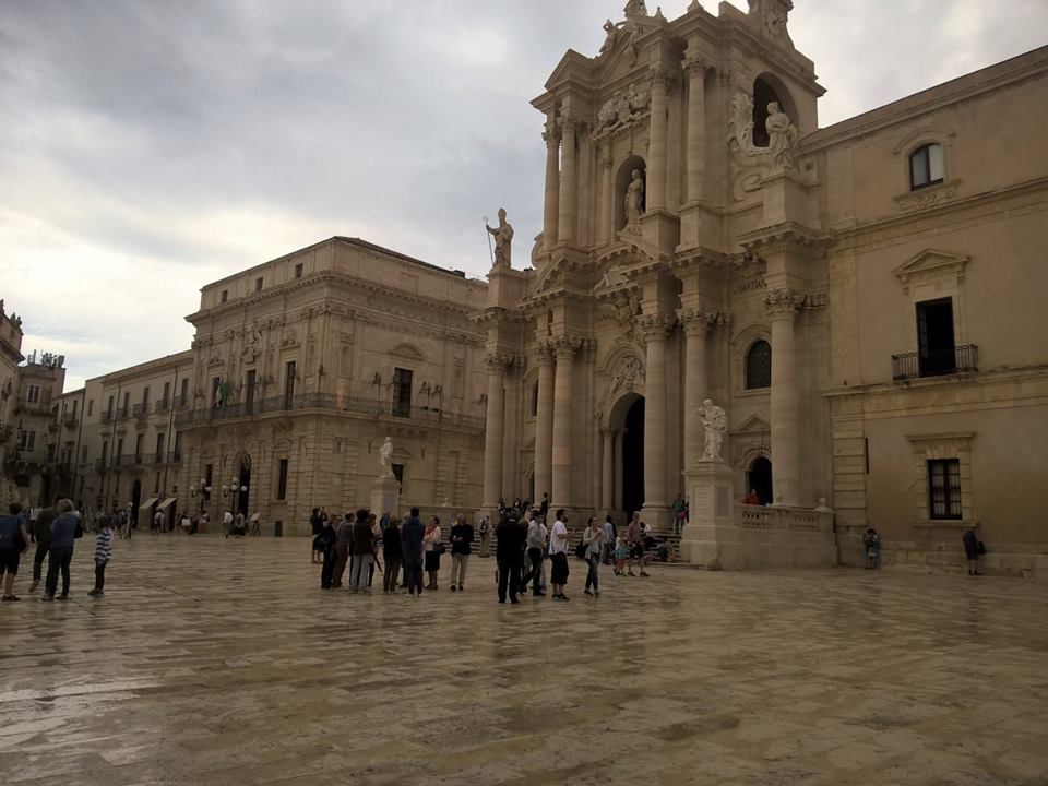 Appena un quarto d’ora di strada e all’orizzonte spicca alta una cuspide, quasi una piramide. E’ il santuario della Madonna delle Lacrime, imponente tempio circolare d’ardita architettura, all’ingresso di Siracusa. Una visita breve, perché il nostro interesse è per la città vecchia, nell’isola di Ortigia. Ha una storia millenaria, Siracusa. La sua fondazione risale al 734 a.C. ad opera dei greci di Corinto. Tra le più grandi città della classicità, per potenza e ricchezza, fu in competizione con Atene, che tentò invano d’assoggettarla, e principale rivale di Cartagine, città dei Fenici. Solo Roma, nel 212 a.C., riuscì a conquistarla, non senza difficoltà. Patria di artisti, filosofi e scienziati, Siracusa diede i natali ad Archimede. La visitarono personalità illustri. Platone vi soggiornò tre volte, ma anche Eschilo, Pindaro e Senofonte. Poi Cicerone, che la lodò come la più bella città greca. Nei secoli successivi fu luogo d’incrocio di popoli e dominazioni: bizantini, arabi, normanni, svevi, angioini, aragonesi. Un crogiolo di culture che hanno fatto della Sicilia una straordinaria sintesi di civiltà.
