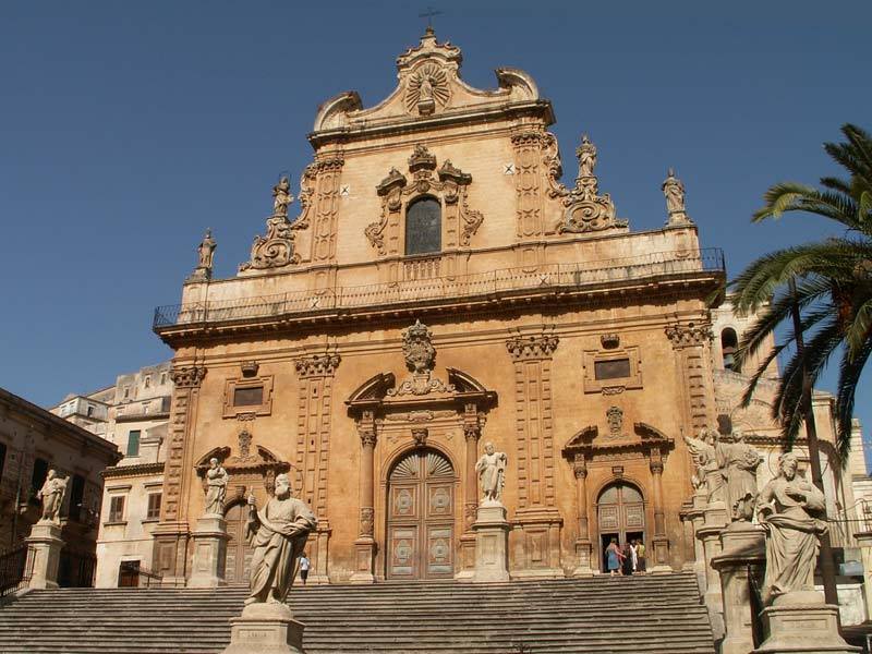 Il nostro viaggio prosegue verso Scicli, altra perla di quest’angolo di Sicilia, impreziosita da magnifiche chiese e superbi edifici tardo-barocchi, come il Palazzo Beneventano e il Palazzo Civico. Quest’ultimo assai noto, per essere la “Questura” del commissario Montalbano, nei film prodotti dalla Rai e tutti girati da queste parti, tratti dai famosi romanzi di Andrea Camilleri. Magnifici i templi, come la Matrice di San Matteo e le chiese di San Giovanni Evangelista, di Santa Maria la Nova, della Consolazione, di San Bartolomeo. Curiosità in due chiese di Scicli: la statua d’una combattiva Madonna a cavallo che travolge due Saraceni, mai vista così la Madre di Cristo, e una tela - ne è autore don Juan de Parlazin, nel 1696 - con un Gesù Crocifisso coperto dai fianchi fino ai piedi con una singolare “sottana” bianca ricamata. Un soggetto che non ha eguali, tranne un’opera analoga a Burgos, in Spagna.