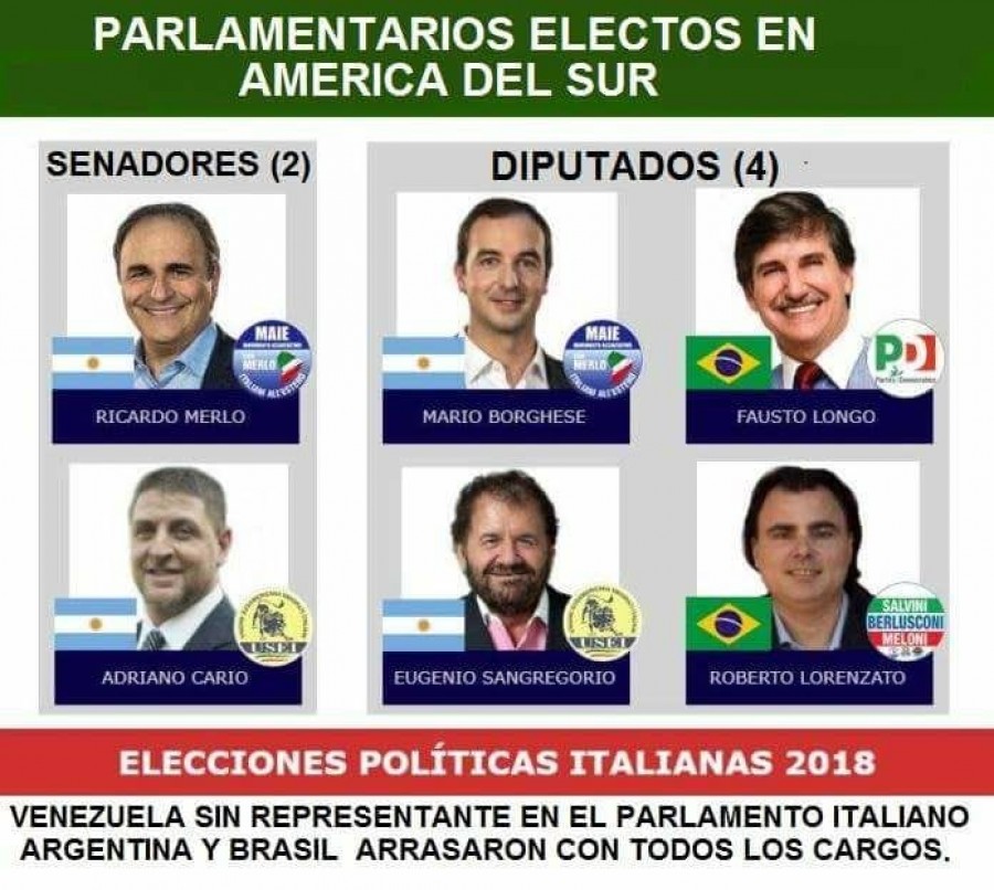 In America Meridionale c'è da segnalare che al senato non è stato eletto Fabio Porta (PD) e alla Camera Renata Bueno (Civica Popolare Lorenzin) entrambi deputati uscenti.