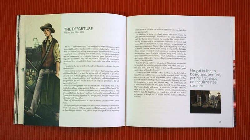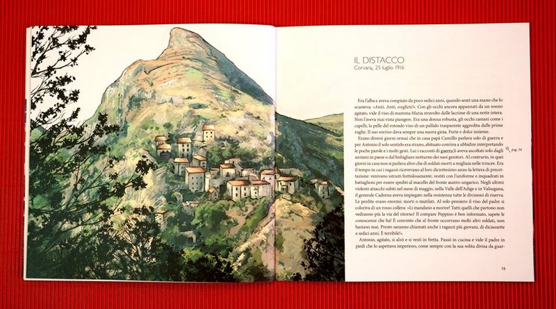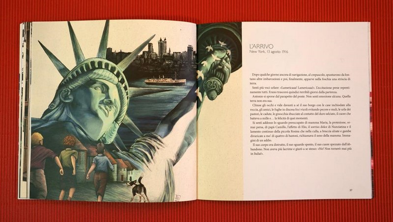 L’eco del Premio è giunta perfino in Rai, che sul canale dedicato agli italiani nel mondo (Rai Italia) ha dedicato un’intervista all’arch. Anna Pia Urbano nel seguitissimo programma Community, condotto da Benedetta Rinaldi e Alessio Aversa, in una delle puntate trasmesse del 2017. Ma veniamo ora alla storia raccontata in questo primo volume. E’ ancora Anna Pia Urbano a parlarne: “A cento anni dalla fine dei tragici eventi della Grande Guerra (1915-1918), come annota Goffredo Palmerini nella Presentazione al volume, viene pubblicata la storia di un ragazzo sedicenne abruzzese, Antonio Rosati, nato a Torre de’ Passeri, cheil padre nel 1916 costrinse ad emigrare a New York per sottrarlo al rischio di essere chiamato alle armi e inviato al fronte dove tanti suoi coetanei avrebbero perso la vita o sarebbero rimasti mutilati, come capitò ai “ragazzi del ‘99” dopo la tragica rotta di Caporetto dell’ottobre 1917. I racconti illustrati sono tutti contestualizzati nel territorio di Corvara, un piccolo comune della Provincia di Pescara di meno di trecento abitanti, oggetto del lavoro di valorizzazione portato avanti dalla nostra associazione attraverso molteplici iniziative, ma le storie narrate, nascoste nelle pieghe della cosiddetta “storia minore”, potrebbero appartenere a qualsiasi altro paese delle aree interne dell’Abruzzo e hanno lo scopo di sensibilizzare le nuove generazioni verso alcune importanti tematiche attraverso l’illustrazione”.