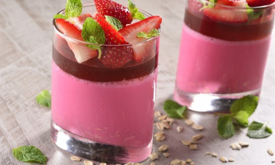 Prepara la Gelatina de Fresa Light para Preparar con Leche D´Gari®. Vacía la gelatina en 2 tazas de leche fría, espera 5 minutos a que se hidrate. Agrega 2 tazas de leche muy caliente, mezcla a que se disuelva por completo y agrega la avena.