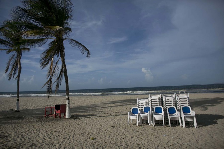 Julio González, de 59 años, intenta mantener su pequeño comercio de venta de toallas y ropa de baño en Playa El Agua, que dijo hace dos años solía ser visitada por cientos de turistas locales y extranjeros y hoy luce casi desierta.